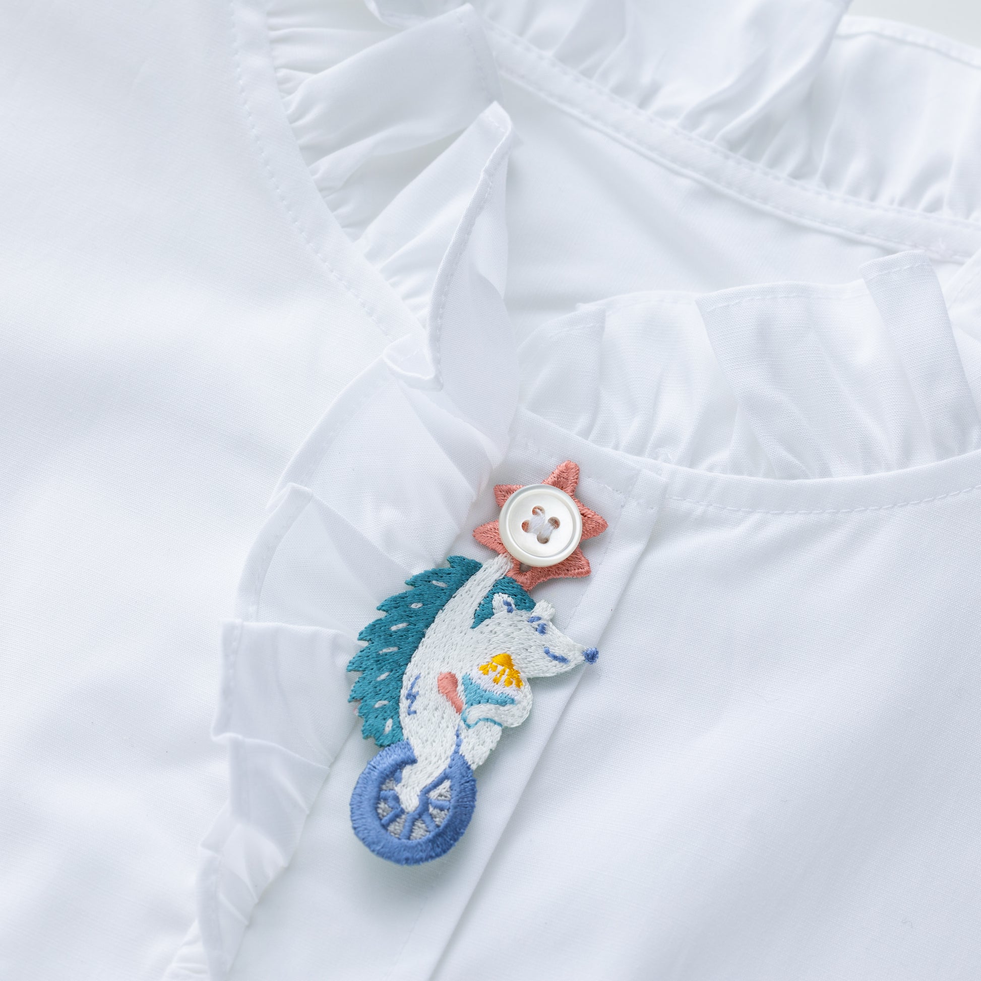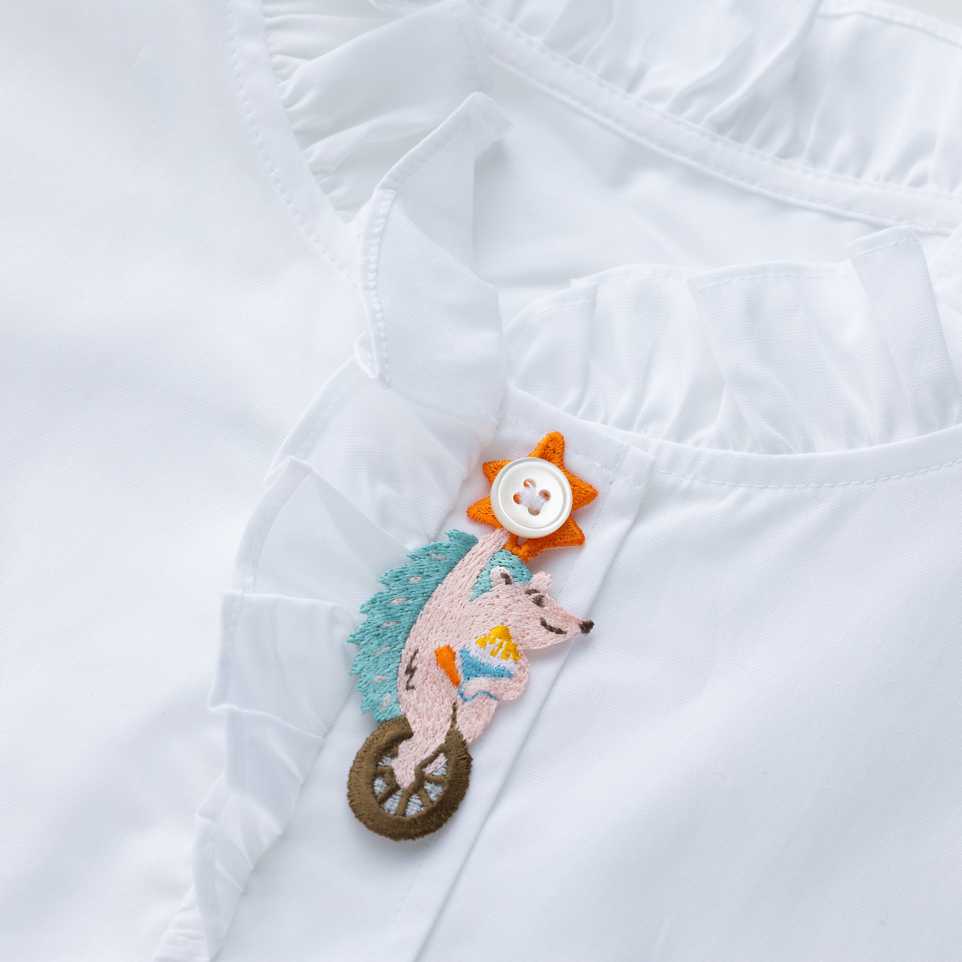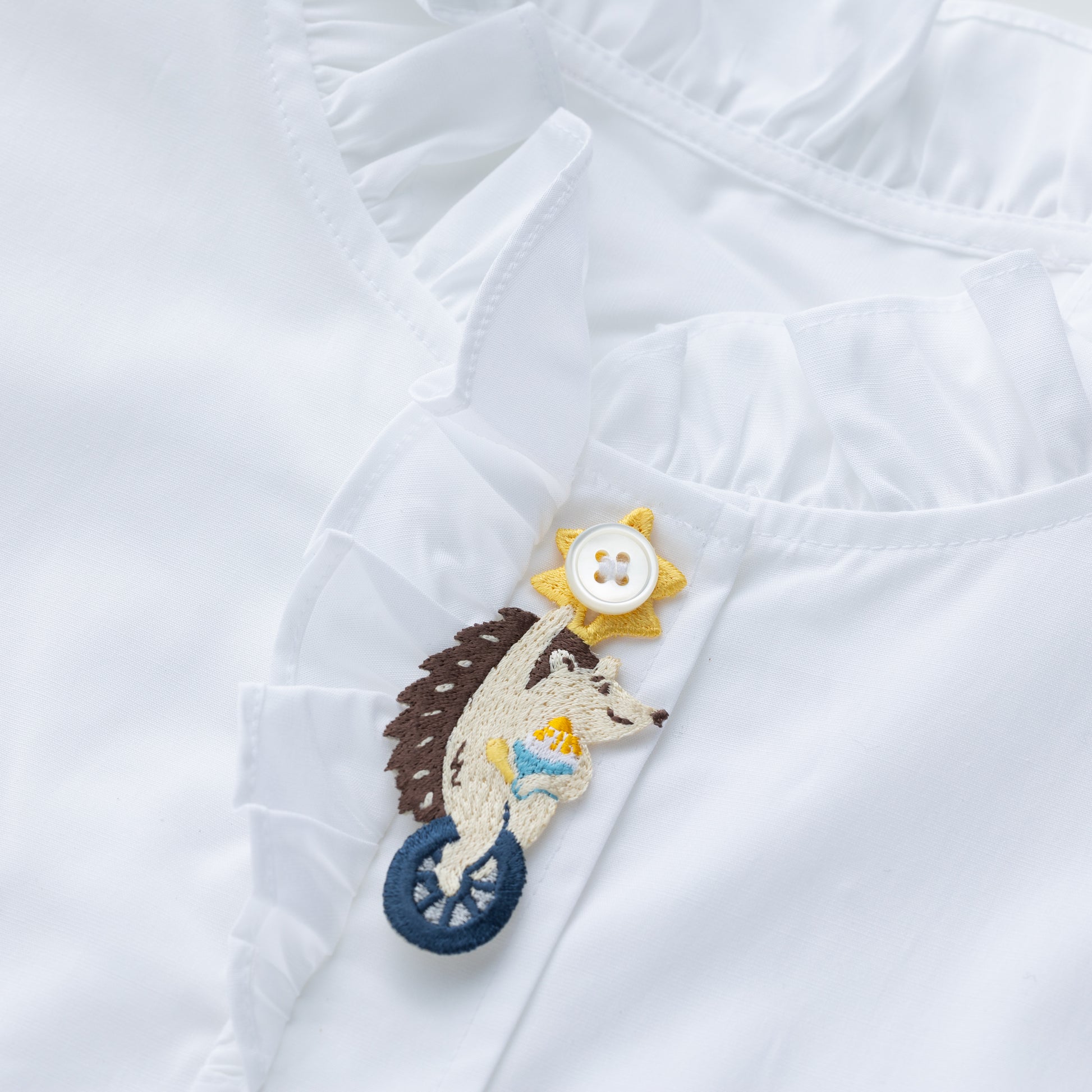 It can be attached or removed freely wherever there's a button—at the neck, collar, chest, or cuffs—adding a stylish accent to your outfit.