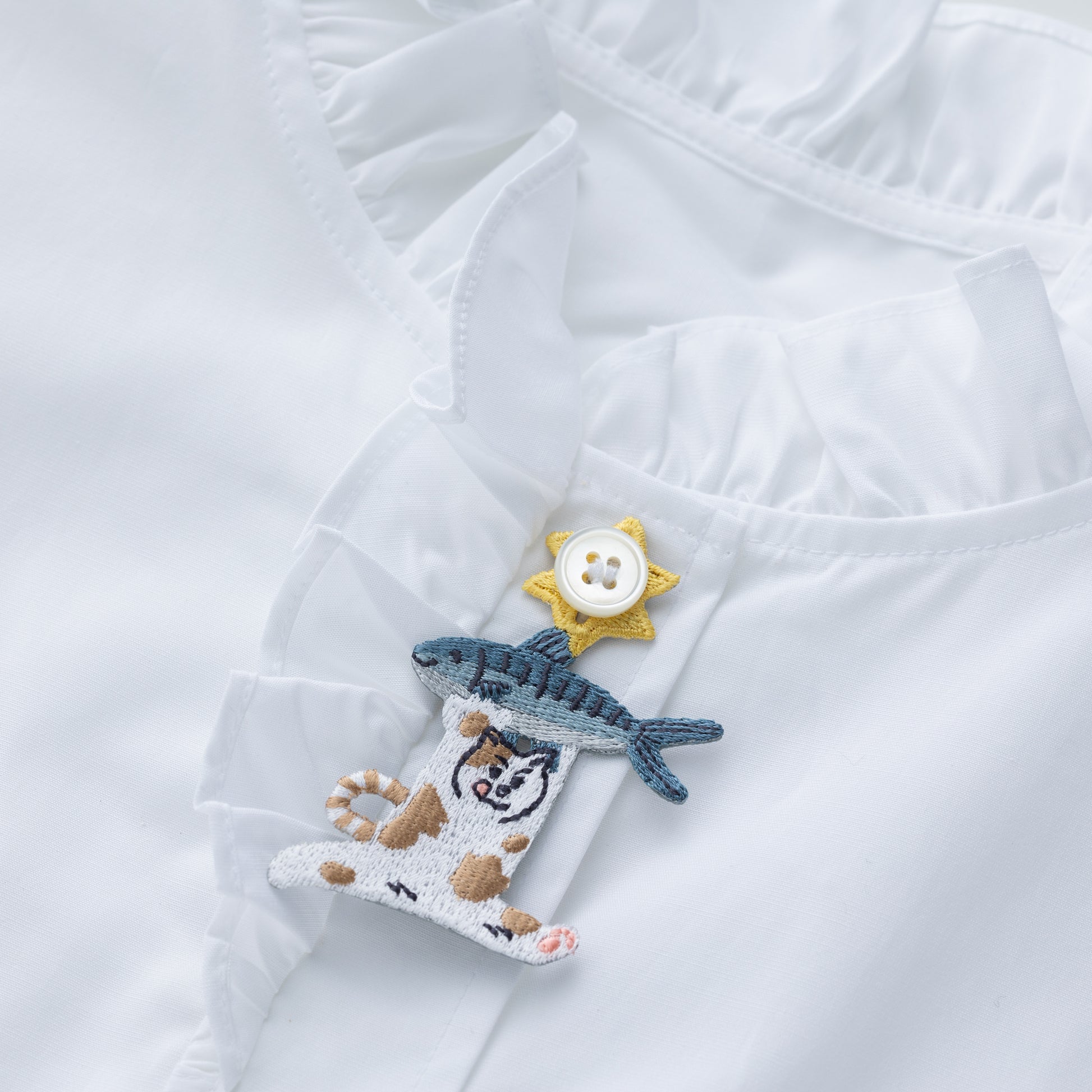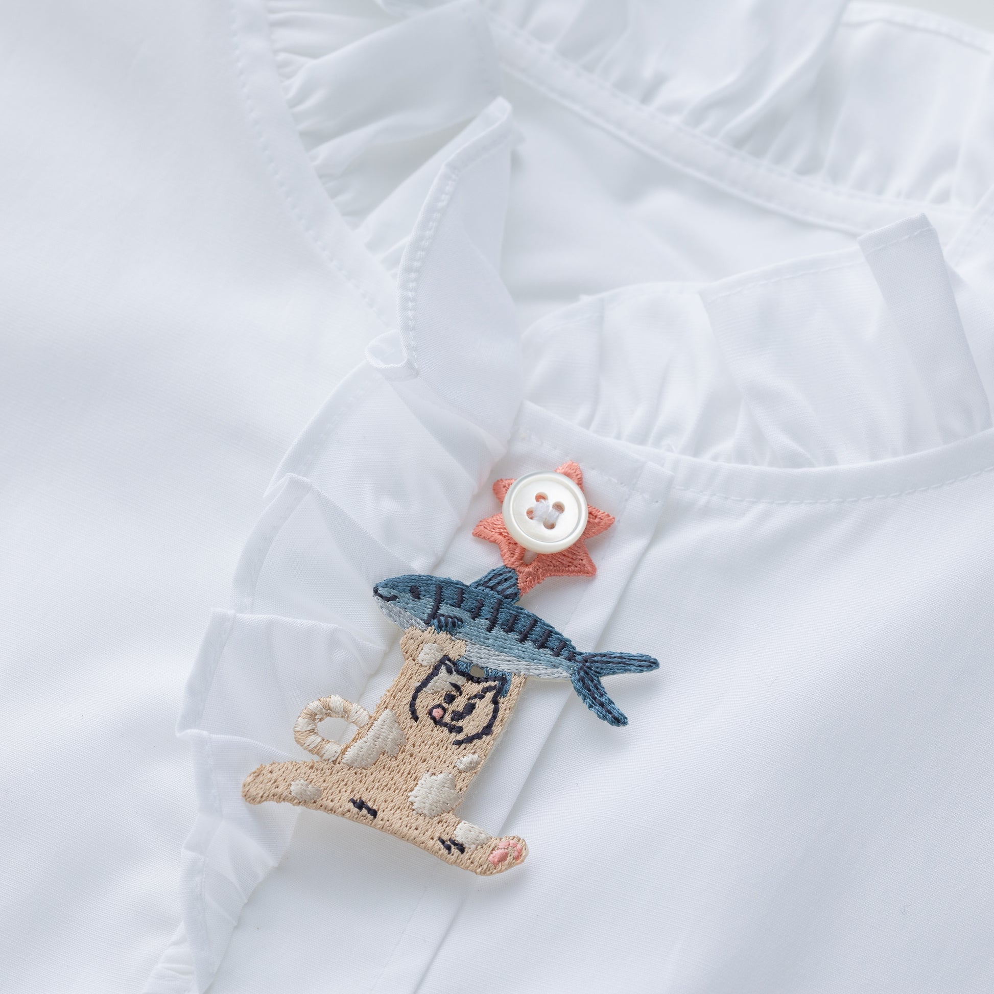 It can be attached or removed freely wherever there's a button—at the neck, collar, chest, or cuffs—adding a stylish accent to your outfit.