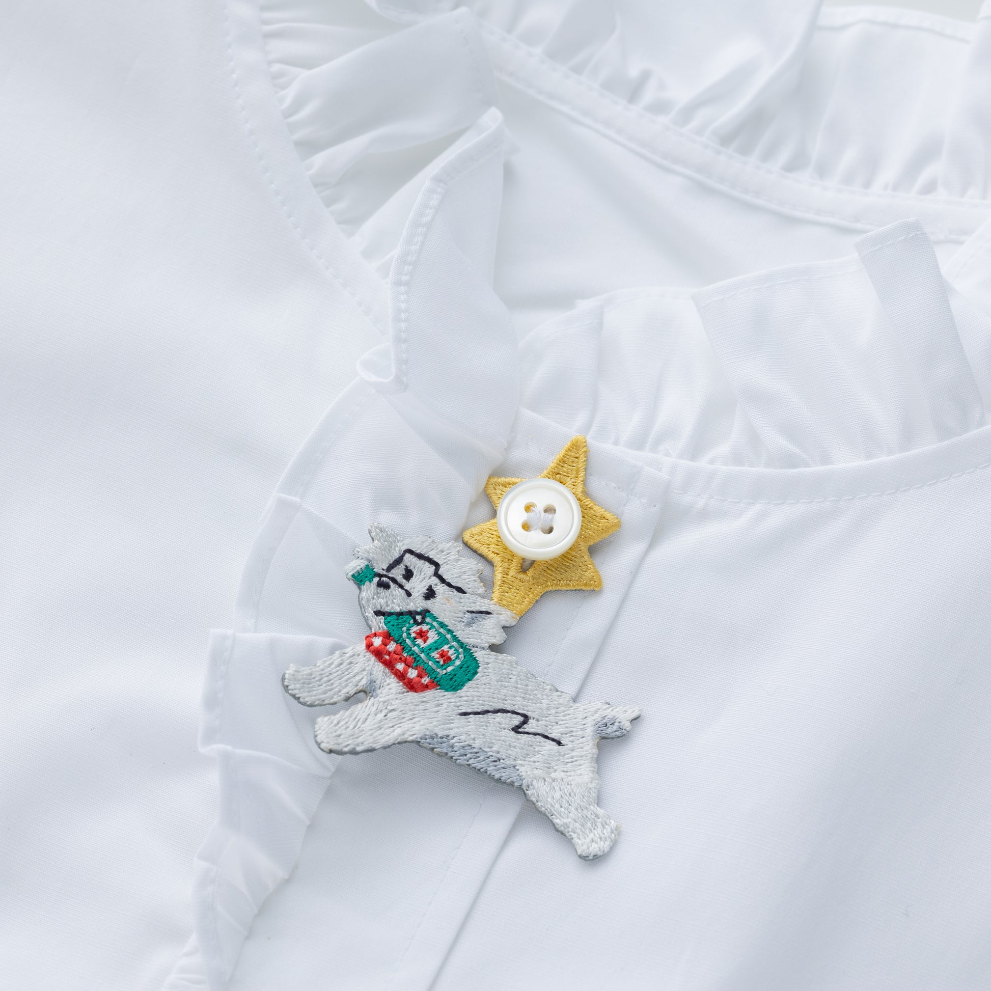 It can be attached or removed freely wherever there's a button—at the neck, collar, chest, or cuffs—adding a stylish accent to your outfit.